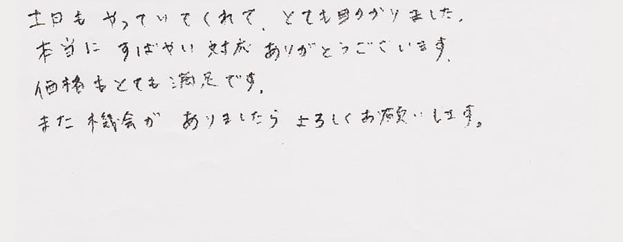 すぐに対応して頂き、とても満足…