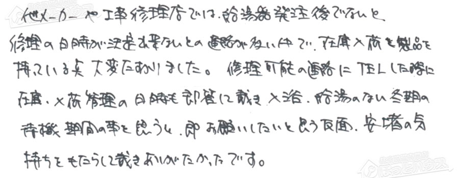 お客様の声 NO.150525 神奈川県相模原市緑区 E様