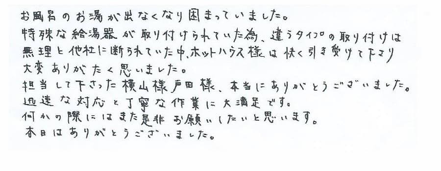 給湯器交換の評判