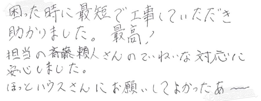 「ほっとハウス」の評判・お客様の声