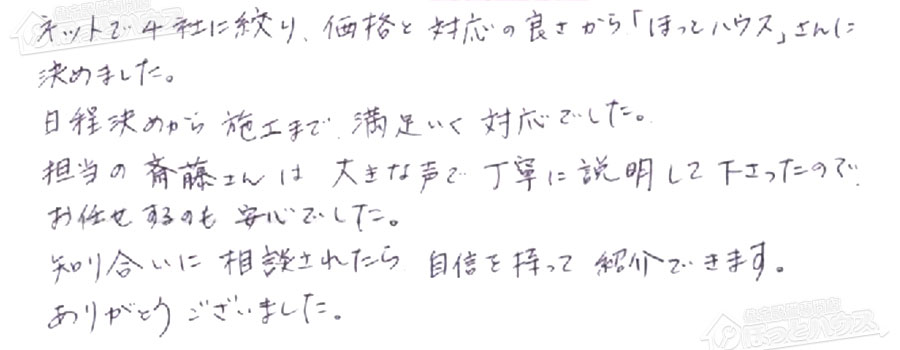 お客様の声 NO.151552 神奈川県横浜市港北区 O様