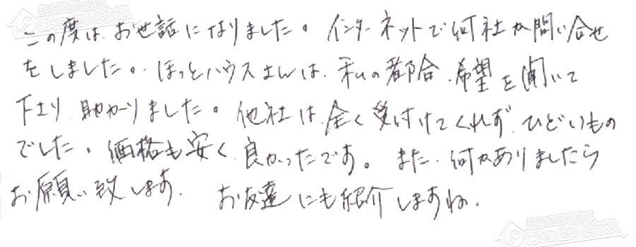 「ほっとハウス」の評判・お客様の声