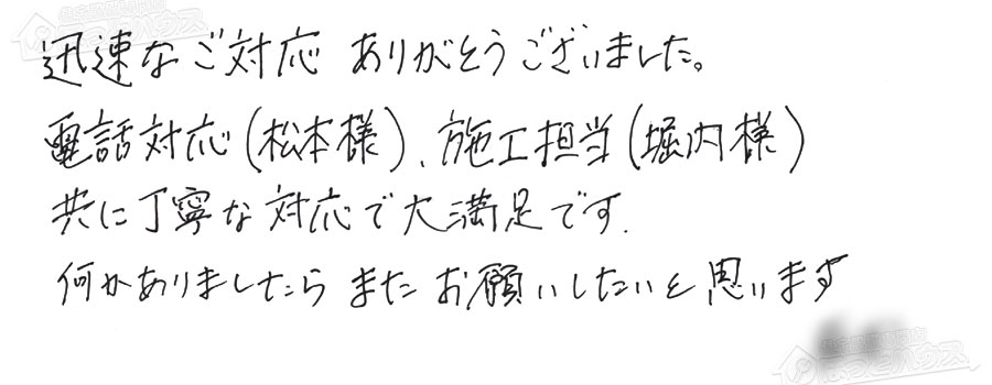 すぐに対応して頂き、とても満足…