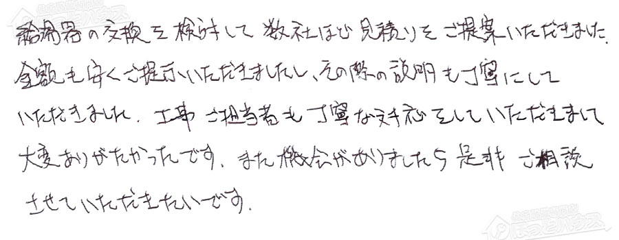 給湯器交換の評判