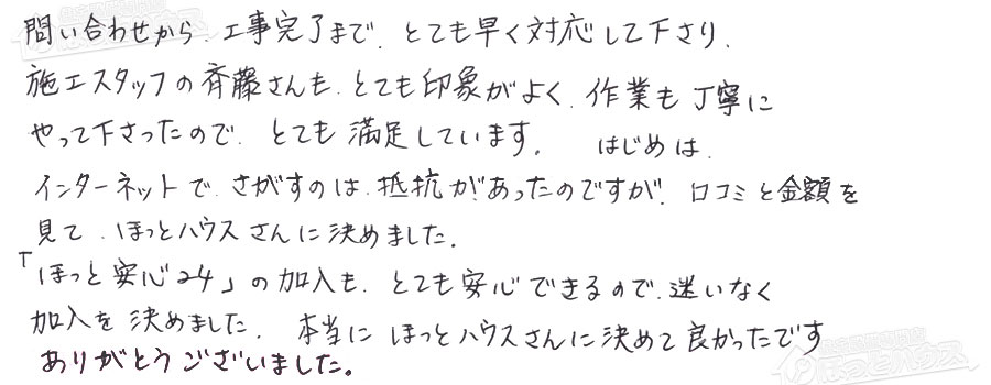 加入を決めました。本当にほっとハウスさんに決めて良かったです