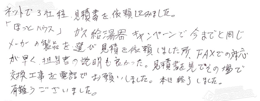 「ほっとハウス」の評判・お客様の声
