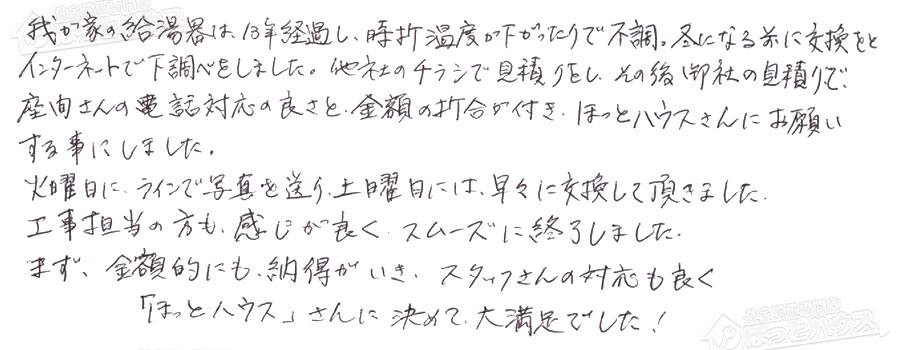 座間さんの電話対応の良さと、金額の折合が付き、ほっとハウスさんにお願い