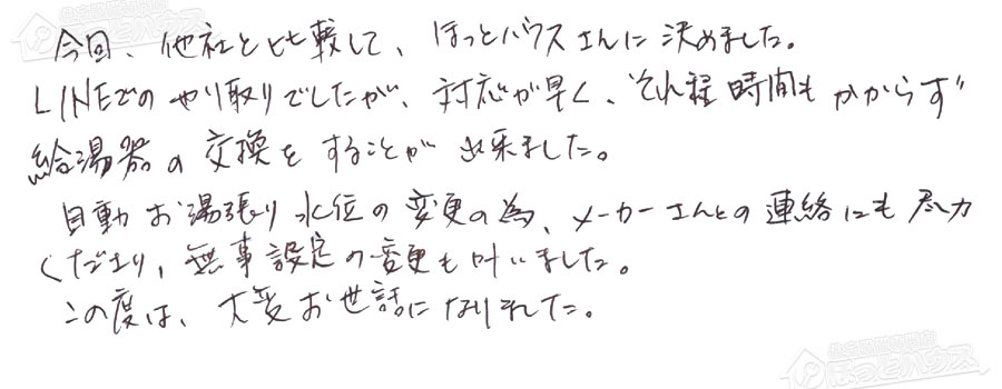 給湯器交換の評判