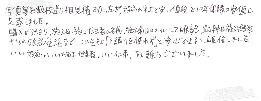 お客様の声 NO.155205 埼玉県ふじみ野市 I様