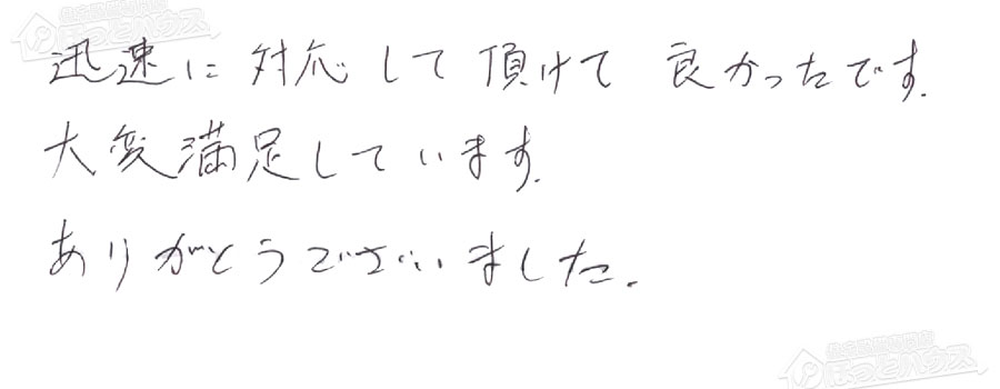 すぐに対応して頂き、とても満足…