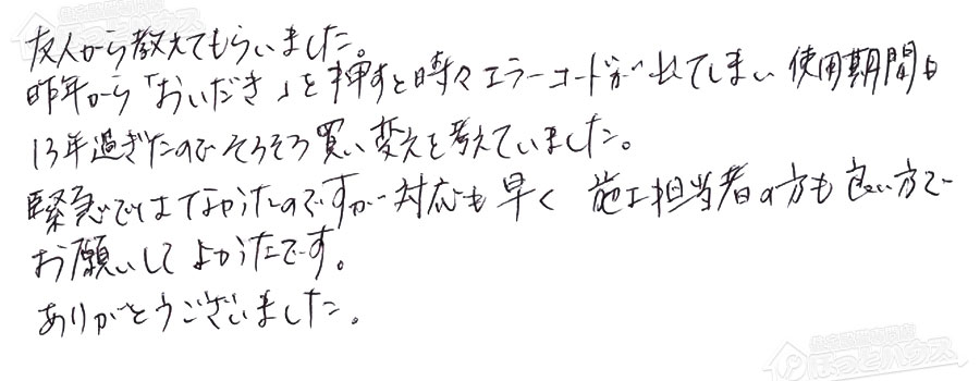 「ほっとハウス」の評判・お客様の声