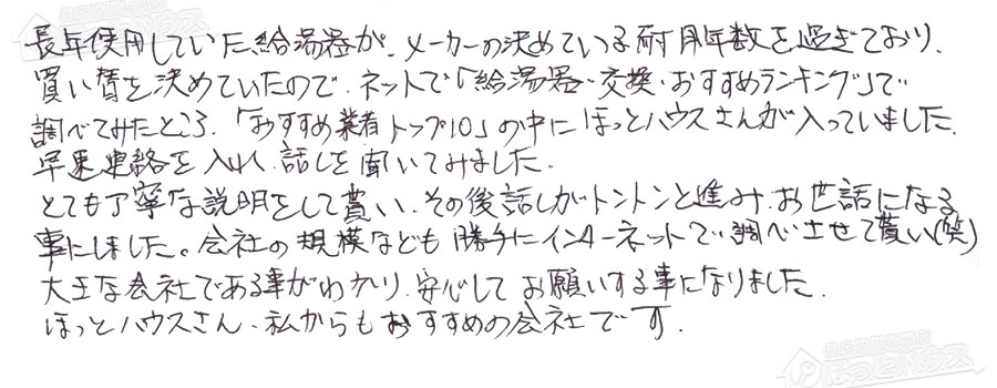 買い替えを決めていたので、ネットで「給湯器・交換・おすすめランキング」で