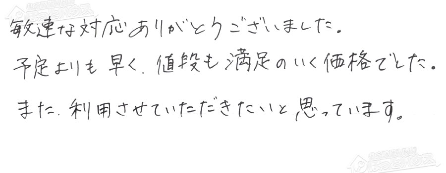 すぐに対応して頂き、とても満足…