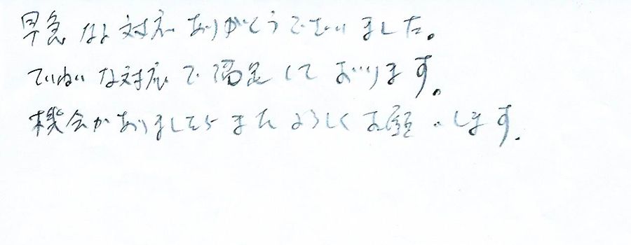 すぐに対応して頂き、とても満足…