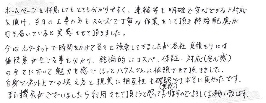 の全てにおいて魅力を感じほっとハウスさんに依頼させて頂きました。