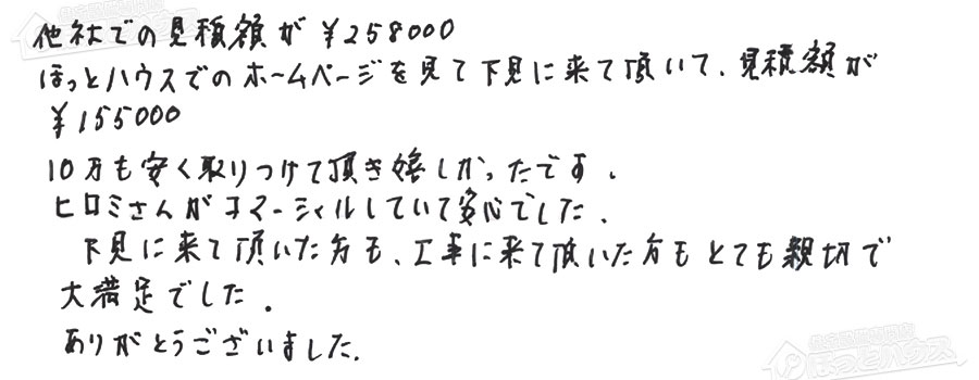 お客様の声 NO.160626 神奈川県相模原市南区 A様