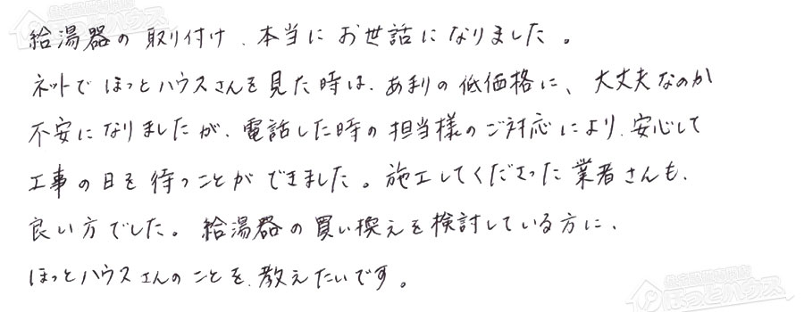 給湯器交換の評判