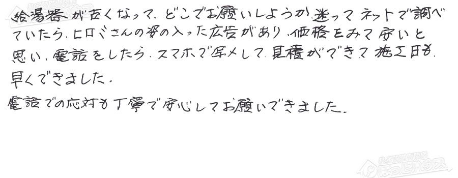 給湯器交換の評判