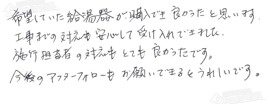 給湯器交換の評判