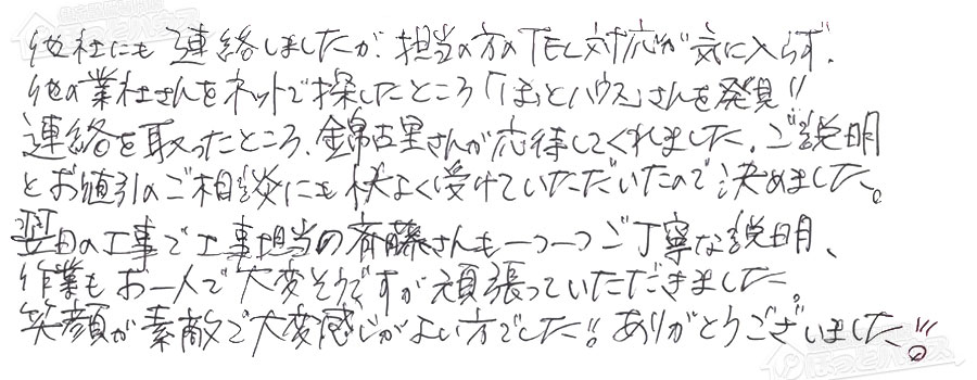 笑顔が素敵で大変感じがよい方でした。ありがとうございました。