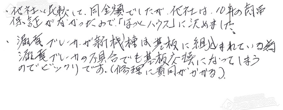 「ほっとハウス」の評判・お客様の声