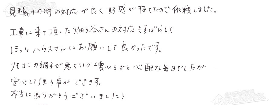 「ほっとハウス」の評判・お客様の声