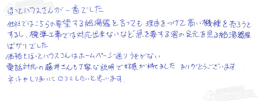 「ほっとハウス」の評判・お客様の声