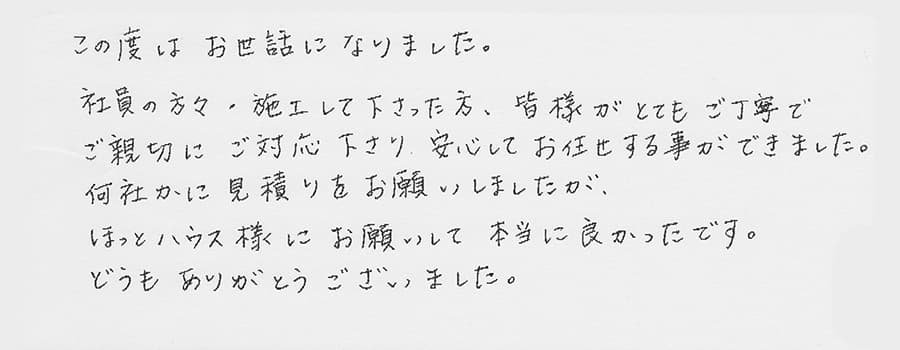 お客様の声 NO.232 神奈川県横浜市瀬谷区 K様