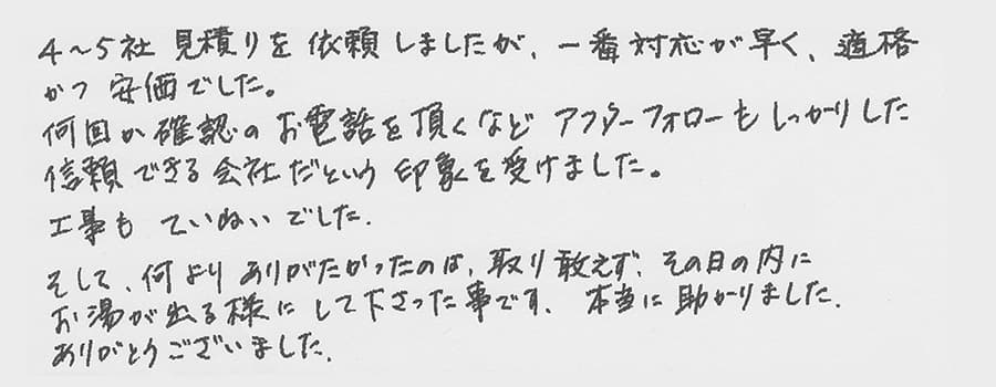 給湯器交換の評判