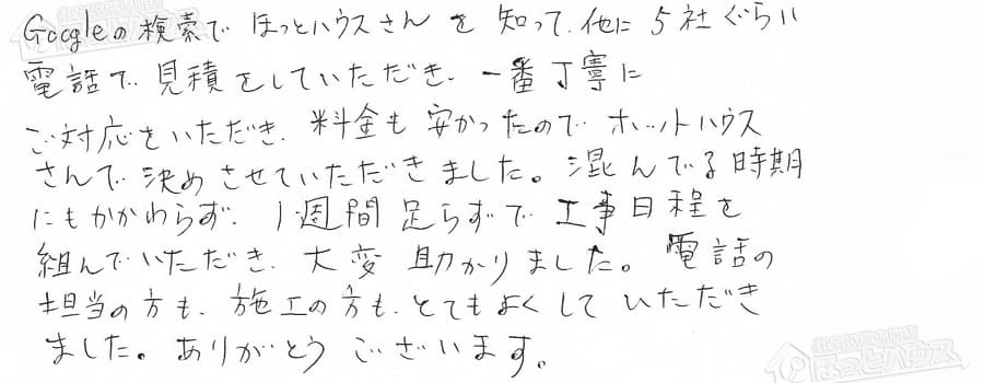 お客様の声 NO.26791 神奈川県相模原市南区 M様
