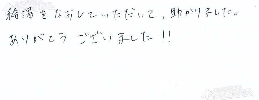 給湯をなおしていただいて、助かりました。