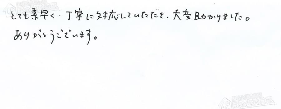 すぐに対応して頂き、とても満足…