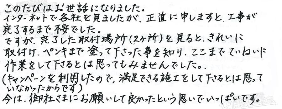 (キャンペーンを利用したので、満足できる施工をして下さるとは思って