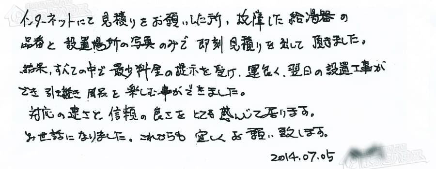 給湯器交換の評判