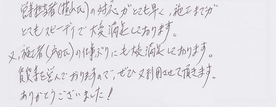 すぐに対応して頂き、とても満足…