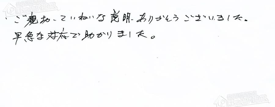 すぐに対応して頂き、とても満足…