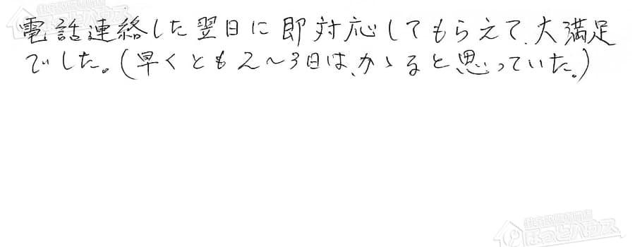 すぐに対応して頂き、とても満足…