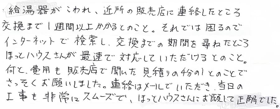 「ほっとハウス」の評判・お客様の声