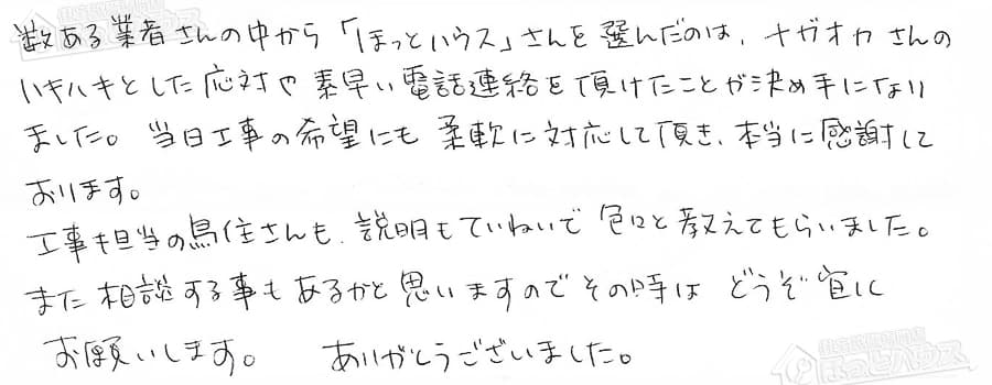 お客様の声 NO.40818 神奈川県横浜市神奈川区 F様