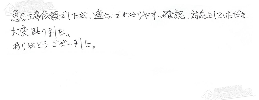 すぐに対応して頂き、とても満足…