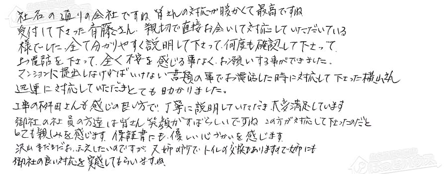 沢山まだまだお伝えしたいのですが、又姉の所でトイレの交換もありますので、姉にも御社の良い対応を実感してもらいますね。