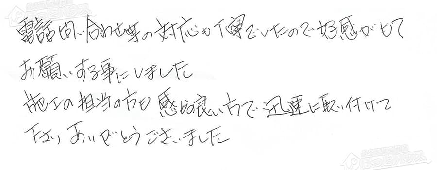 すぐに対応して頂き、とても満足…
