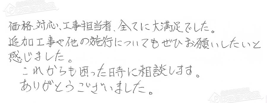 「ほっとハウス」の評判・お客様の声
