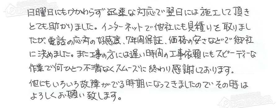 お客様の声 NO.44536 東京都西東京市 S様