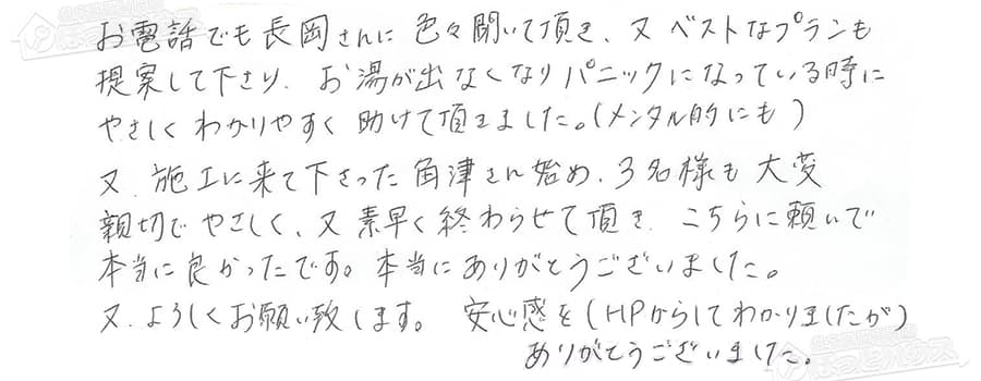 提案して下さり、お湯が出なくなりパニックになっている時に