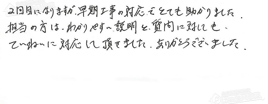 すぐに対応して頂き、とても満足…