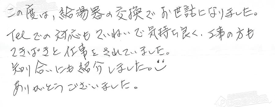 給湯器交換の評判