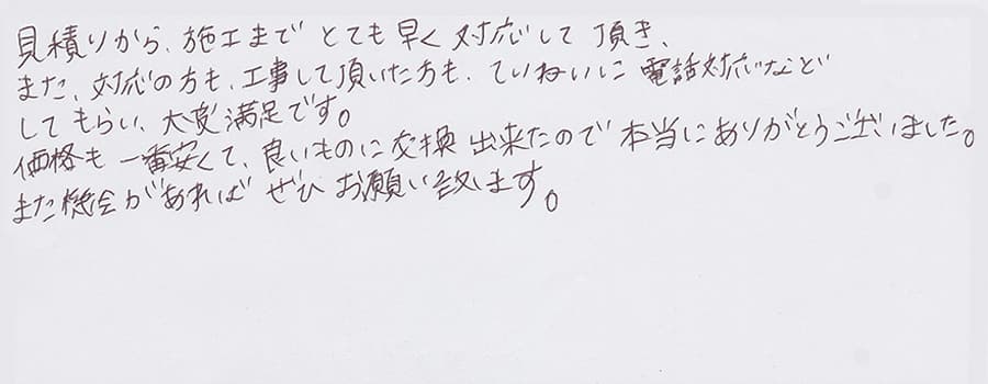 すぐに対応して頂き、とても満足…