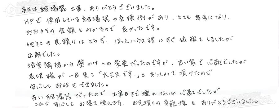 本日は給湯器工事、ありがとうございました。