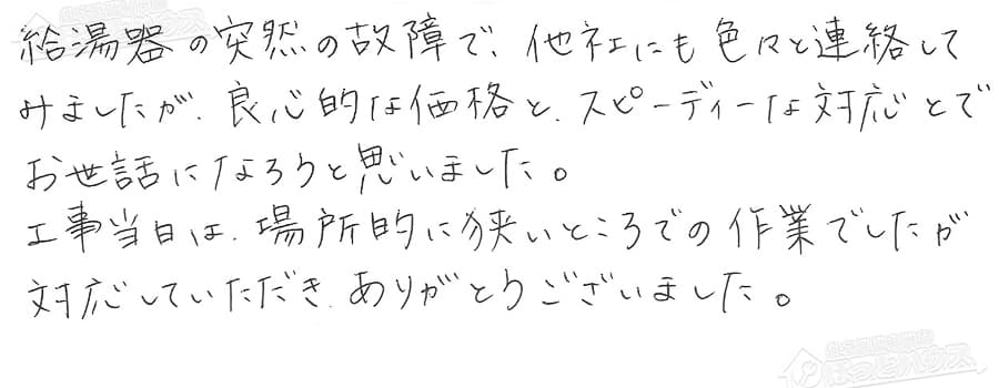 給湯器交換の評判